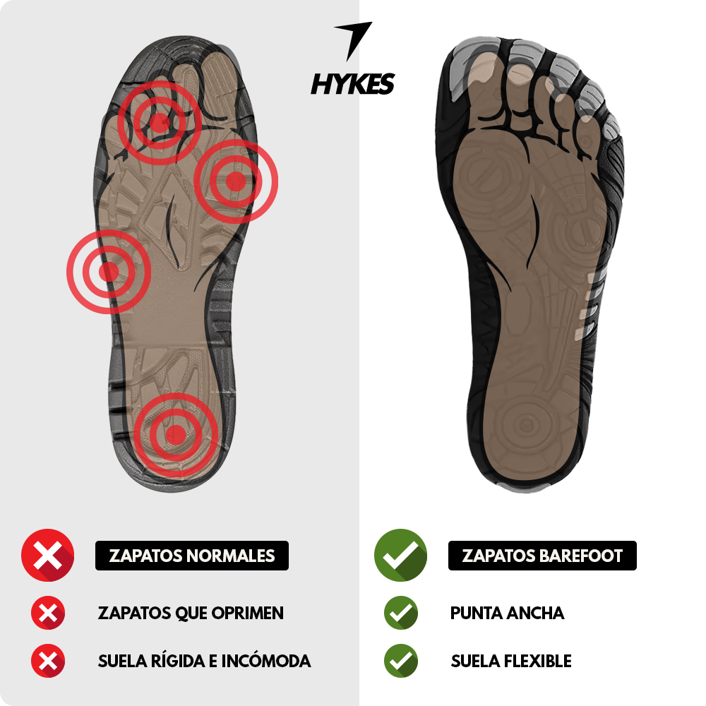 Las zapatillas minimalista barefoot HYKES están diseñadas por expertos para el uso diario, el trabajo y las aventuras al aire libre, ofreciendo comodidad y soporte inigualables. Recomendadas por especialistas en ortopedia y podología por su diseño ergonómico, estas zapatillas son ideales para mejorar la salud del pie y reducir el dolor. Camina con confianza sabiendo que estás en buenas manos, tanto para tus aventuras como para la salud de tus pies.