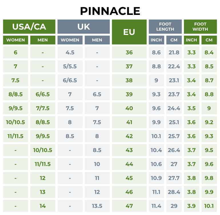 Guía de Tallas de Pinnacle